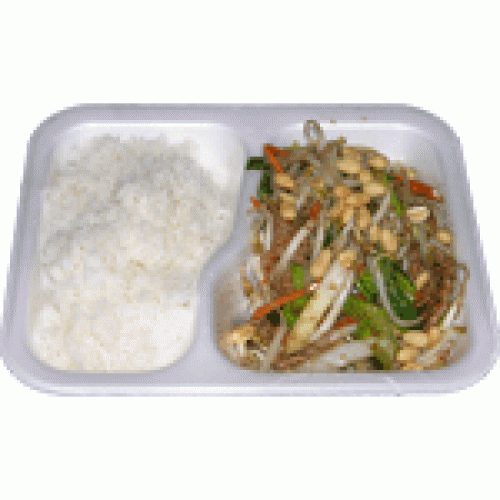 gebraten mit Gemüse und schwarzen Bohnen in scharfer Sauce